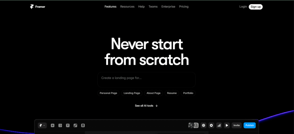 3. Framer AI – Generate Layouts with Prompts