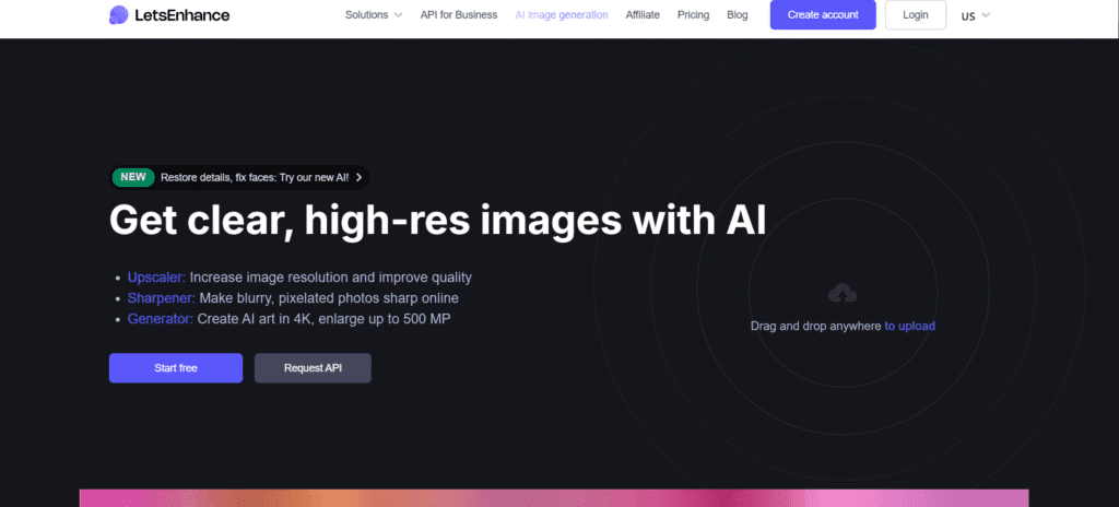 What it does: AI-powered photo enhancement, upscaling, and background removal.