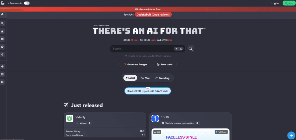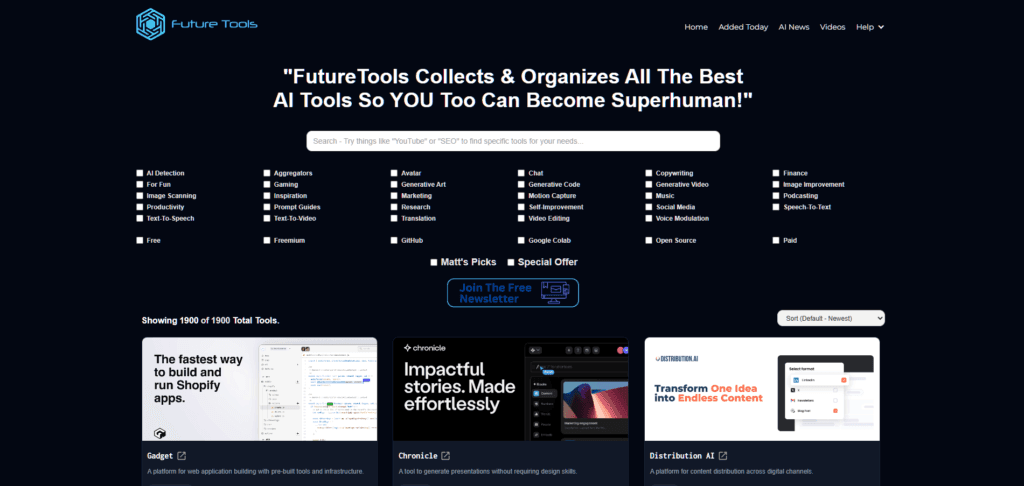 FutureTools remains one of the most authoritative platforms in 2025. Founded by content creator Matt Wolfe, it features thousands of categorized AI tools.