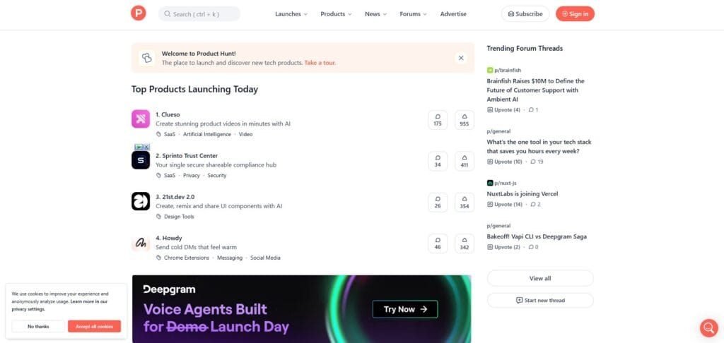 Although not AI-specific, Product Hunt remains a goldmine if you time your launch right. Tagging your product with AI-related categories helps surface it to the right users.
