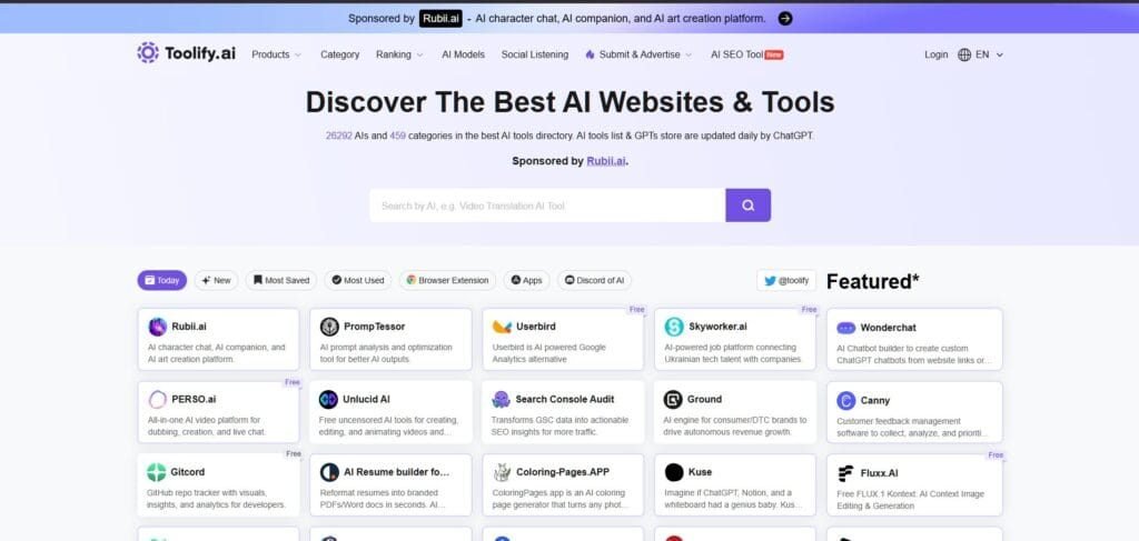 Toolify has a strong reputation among early adopters. Its categories span productivity, dev tools, writing, marketing, and more.